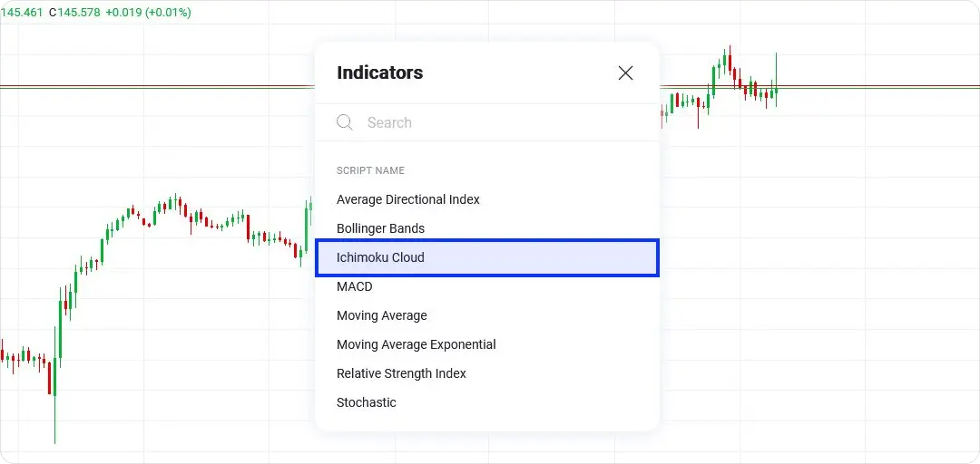 Di jendela pop-up, pilih Ichimoku Cloud. Lalu, tutup jendela.